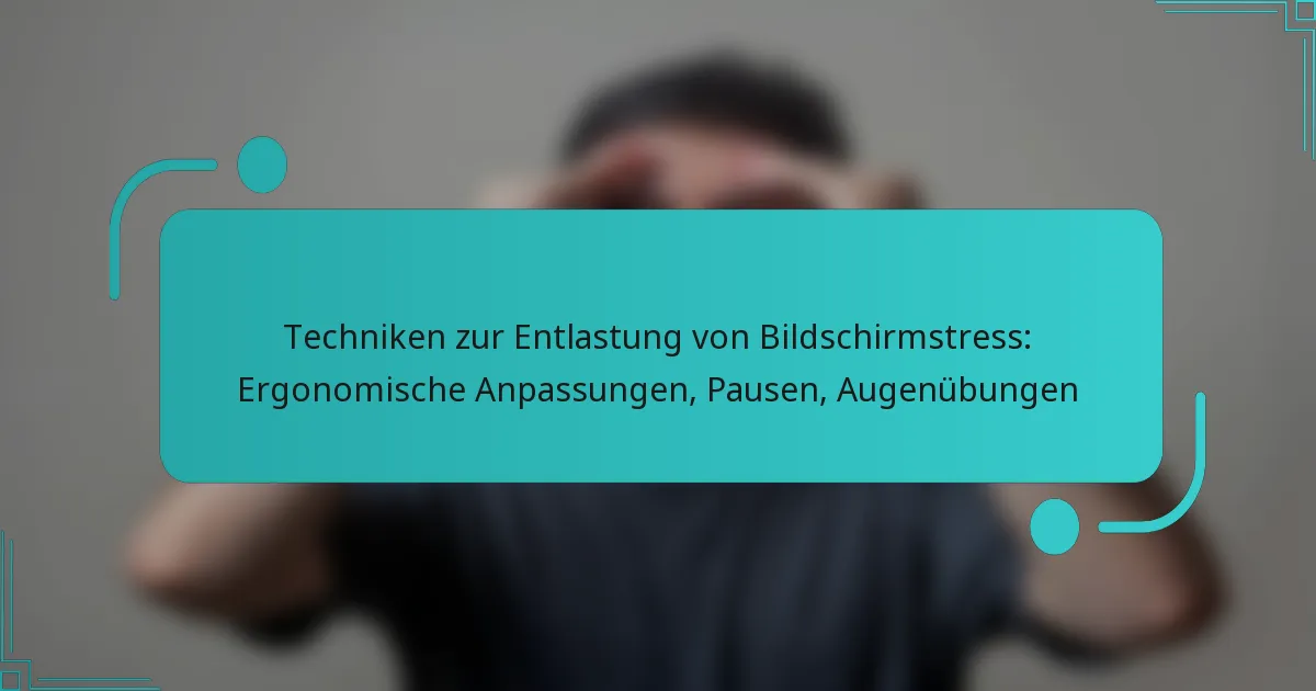 Um Bildschirmbelastung effektiv zu lindern, integrieren Sie regelmäßige Pausen, Augenübungen und ergonomische Anpassungen in Ihre tägliche Routine. Diese Strategien können helfen, Unbehagen zu reduzieren und die allgemeine Augengesundheit zu verbessern.